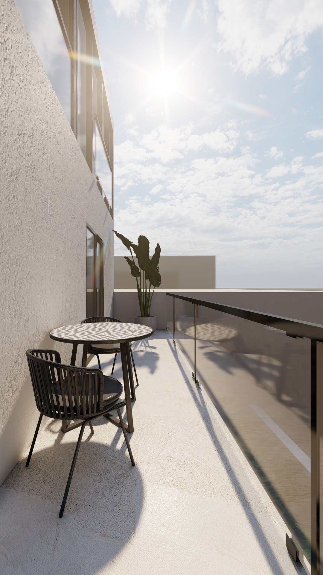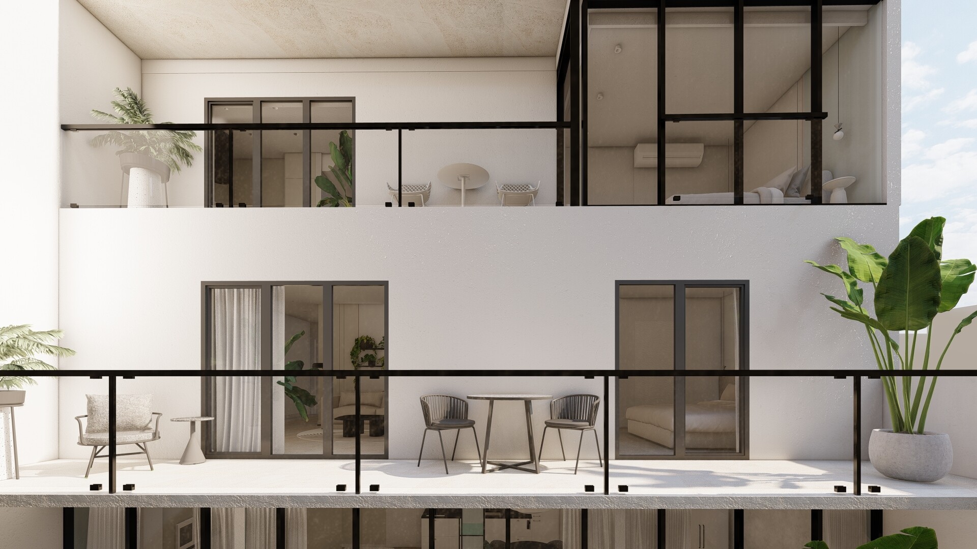 W każdym apartamencie ulokowane są 1 lub 2 sypialnie, salon z kuchnią, łazienka oraz balkon lub taras